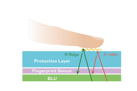 TFT 指纹扫描感测技术利用薄膜电晶体 (TFT) 当作光感测元件,,,,藉由非晶硅 (a-Si) 与低温多晶硅(LTPS)既有光电转换特性对不同波段光源进行吸收,,,使感测 IC 读取阵列感测元件的光漏电差异,,,转换成数位灰阶影像。。。